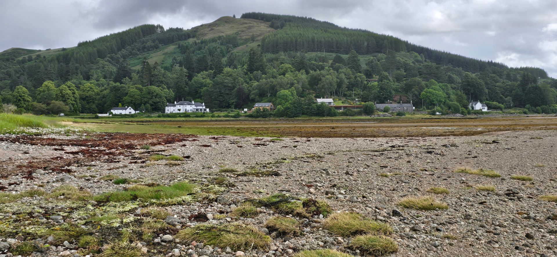 The literal translation for Camas nan Geall is Bay of the Strangers, and there are remains of a Neolithic chambered cairn at the head of the bay. An Iron Age promontory fort lie here and there's a great view from the B8007 view point out to Ben Hiant.